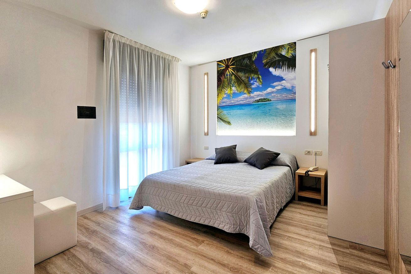 Camera Matrimoniale/Doppia letti singoli e terrazzo VISTA MARE. Dotata di WC, box doccia, asciugacapelli, telefono, Sat TV Aria condizionata regolabile, kit di cortesia, WIFI free, cassetta di sicurezza.